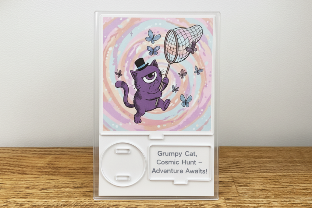 前後のアクリルスタンドの間にカードを立てて飾る構成になっています。